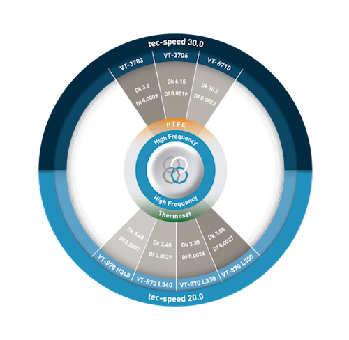 | tec-speed 30.0 (VT-3703/3706) | IPC4103 /230 /270 | Dk 3.0 & 6.15 ceramic-filled PTFE composite material |